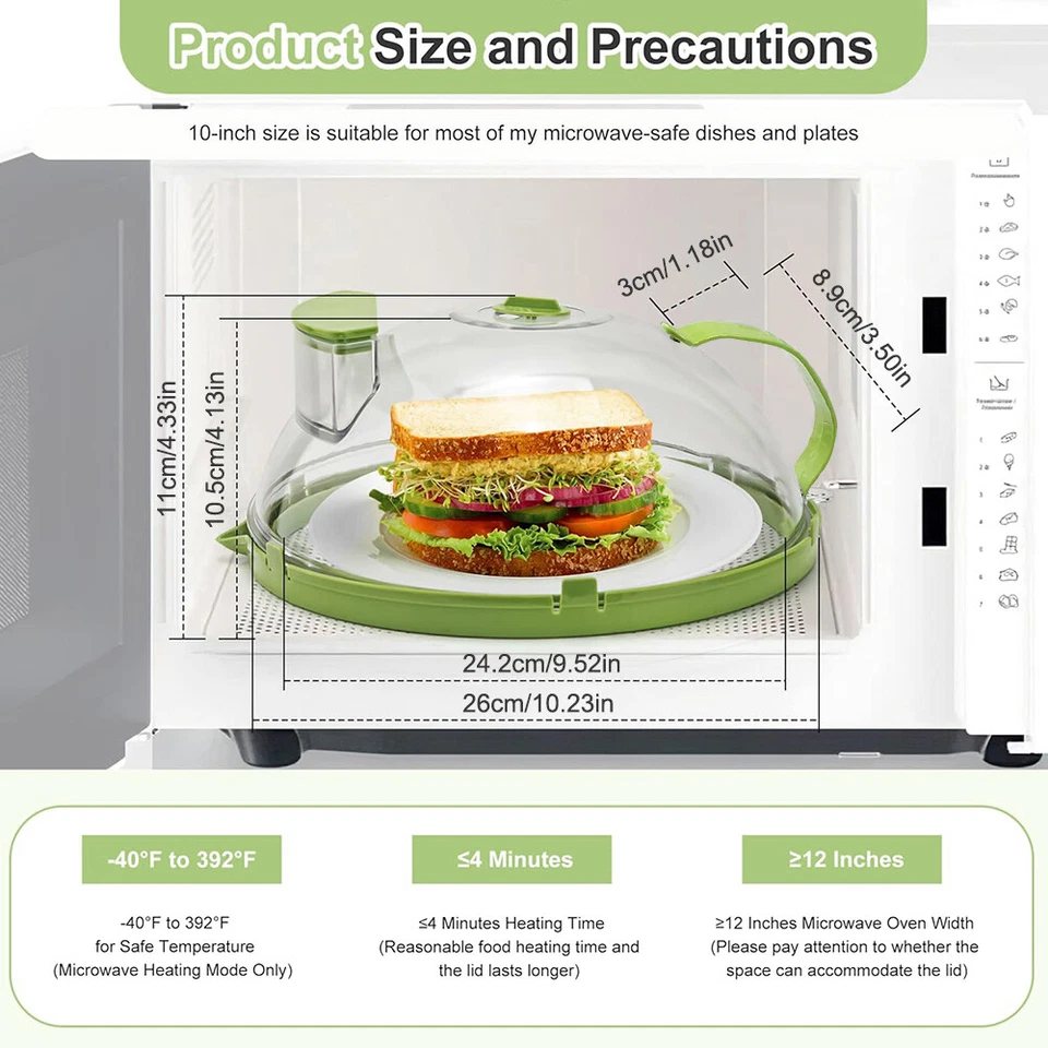 ✅【TIPS AND CUSTOMER SERVICE】Can’t be used for longer than 9 minutes at a time;Can’t be used when the oven is in grill or convection mode.If you are not 100% satisfied with our microwave cover or received a damaged food cover,please feel free to contact our customer service. We will provide the best solution, refund or resend within 24 hours.