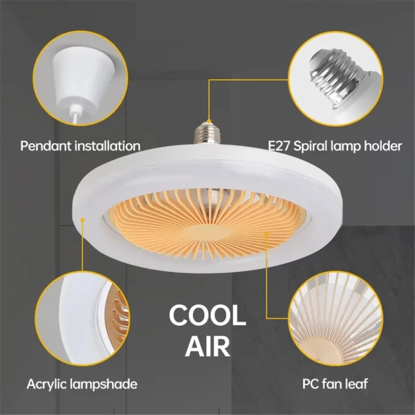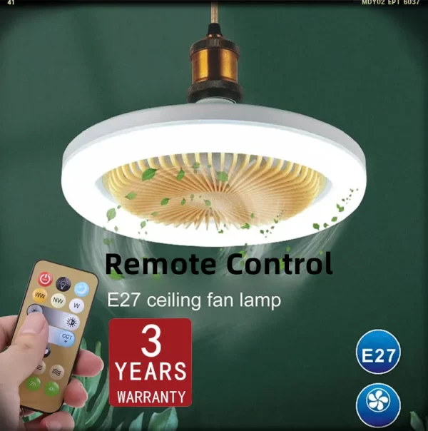 Ceiling Fan With Light And Control 30W LED Lamp E27 Converter Base Remote Silent Electric Fan For Bedroom Home Kitchen