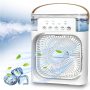 【5 in 1 Mini Frost Fan】This personal air cooler combines a portable air conditioner and an humidifier. 5 in 1 functional design, low-noise powerful fan, 5 large-caliber atomizers, 7 color lights, timer (1H / 2H / 3H) to meet all your needs.